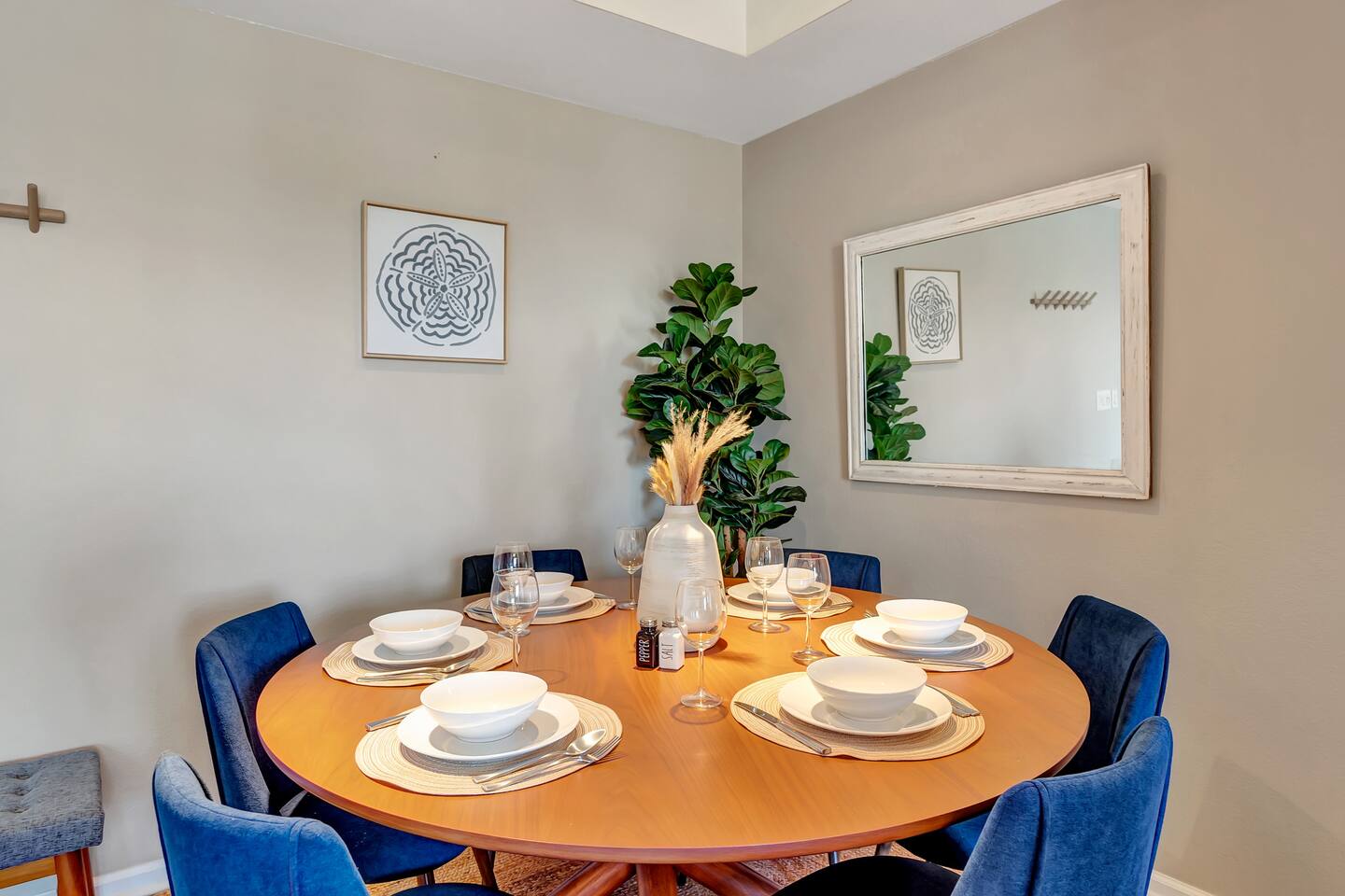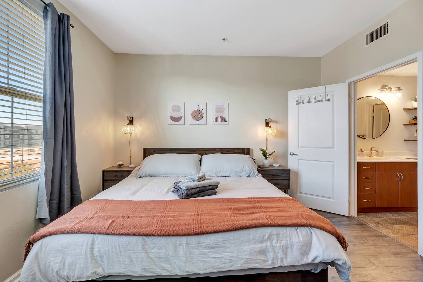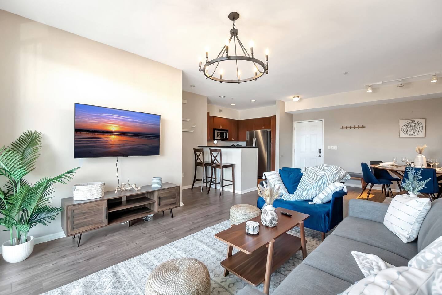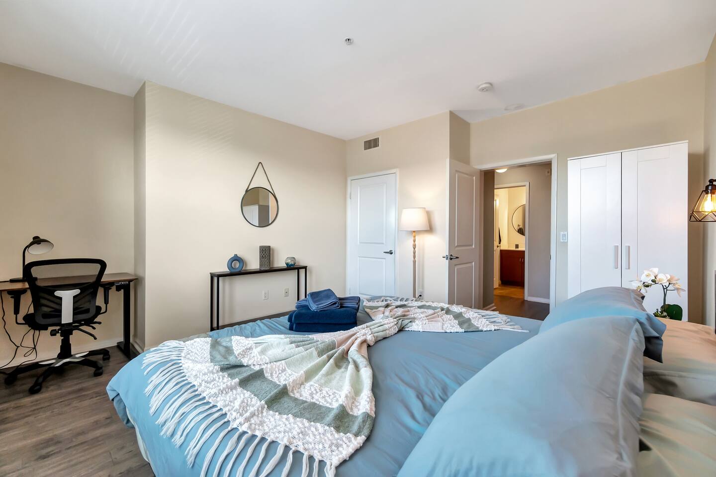 🌟 Location 🌟 🔹 Located in the vibrant Anaheim Platinum Triangle 🔹 5-10 minute drive to Disneyland, Knott’s Berry Farm, Garden Walk 🔹 Walking distance to Stadium, Honda Center, great restaurants, and several breweries 🔹 Safe area, gated community 🔹 On-site restaurants 🔹 Walking distance to restaurants, cafes, entertainment, banking, convenience stores 🔹 5 minute walk to McDonalds, Denny’s, Starbucks, Panera, Chipotle, Carl’s Jr 🔹 Public transit easily accessible nearby 🌟 The Home 🌟 🔹 Master bedroom King bed 🔹 Second bedroom with King bed 🔹 Sofa-bed in living room 🔹 Floor mattress for any room 🔹 Luxury mattress, memory foam, and regular plush pillows 🔹 2 Smart 4K TVs with Netflix, HBO, Paramount+, Prime Video, etc. 🔹 Modern and stylish decor 🔹 Quaint, private balcony for relaxation, watch Disneyland fireworks 🔹 Secure building, private entry 🌟 Kitchen and Dining 🌟 🔹 Fully equipped kitchen with extensive cookware, bakeware, utensils 🔹 Kid’s dinnerware (cups, bowls, plates, utensils) 🔹 Modern appliances - rice cooker, toaster, water heater, dishwasher, water filter, ice maker, oven, microwave 🔹 Coffee bar with Nespresso premium coffee machine 🔹 Coffee pods, creamer, sugar, sweetener, tea 🔹 French press coffee maker 🔹 Premium seasonings for all your cooking needs 🔹 Large modern dining table that comfortably seats 6 🌟 Resort-Style Amenities 🌟 🔹 Sparkling swimming pool, jacuzzi, and BBQ area 🔹 24-hour gym, sauna, and pool table in the game room 🔹 Free parking for two cars in gated garage 🔹 Central AC and heating 🔹 In-unit laundry/dryer Note: a lease agreement will need to be signed by each person in your group before check-in or the reservation may be cancelled.